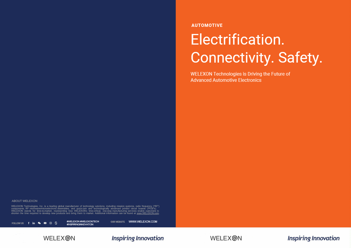 WELEXON offers differentiated values in terms of market-leading RF and microwave expertise and component miniaturization. We have unique testing, fabrication, and in-house talent that help our customers bring enhanced safety to roadways—each year, life-saving safety features are made possible, in part, because of our collaborative development of a one-stop, complete lifecycle solution for our customers.