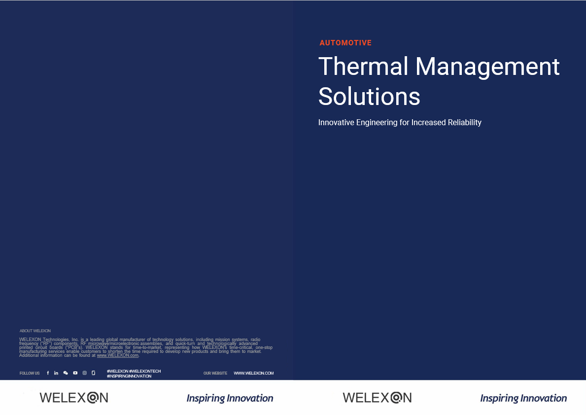WELEXON is the strategic, complete lifecycle supplier of advanced technology, high reliability printed circuit boards ("PCB"s) to OEM and tier-one automotive electronics manufacturers. WELEXON provides a one-stop solution that supports a broad range of our automotive customers' PCB needs. From regional prototypes and ultra quick-turn to high-volume production, from heavy copper to RF/mmWave technology, WELEXON's global team of engineers has you covered.